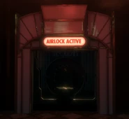 Sicherheitsschotte kommen auch im DLC Burial at Sea vor. Auf der Market Street kann man einige in einem makellosen Zustand sehen. In Fontaine's Kaufhaus wurden die Schotte von den Splicern beschädigt. Einige davon lassen sich mit dem Air Grabber jedoch öffnen.