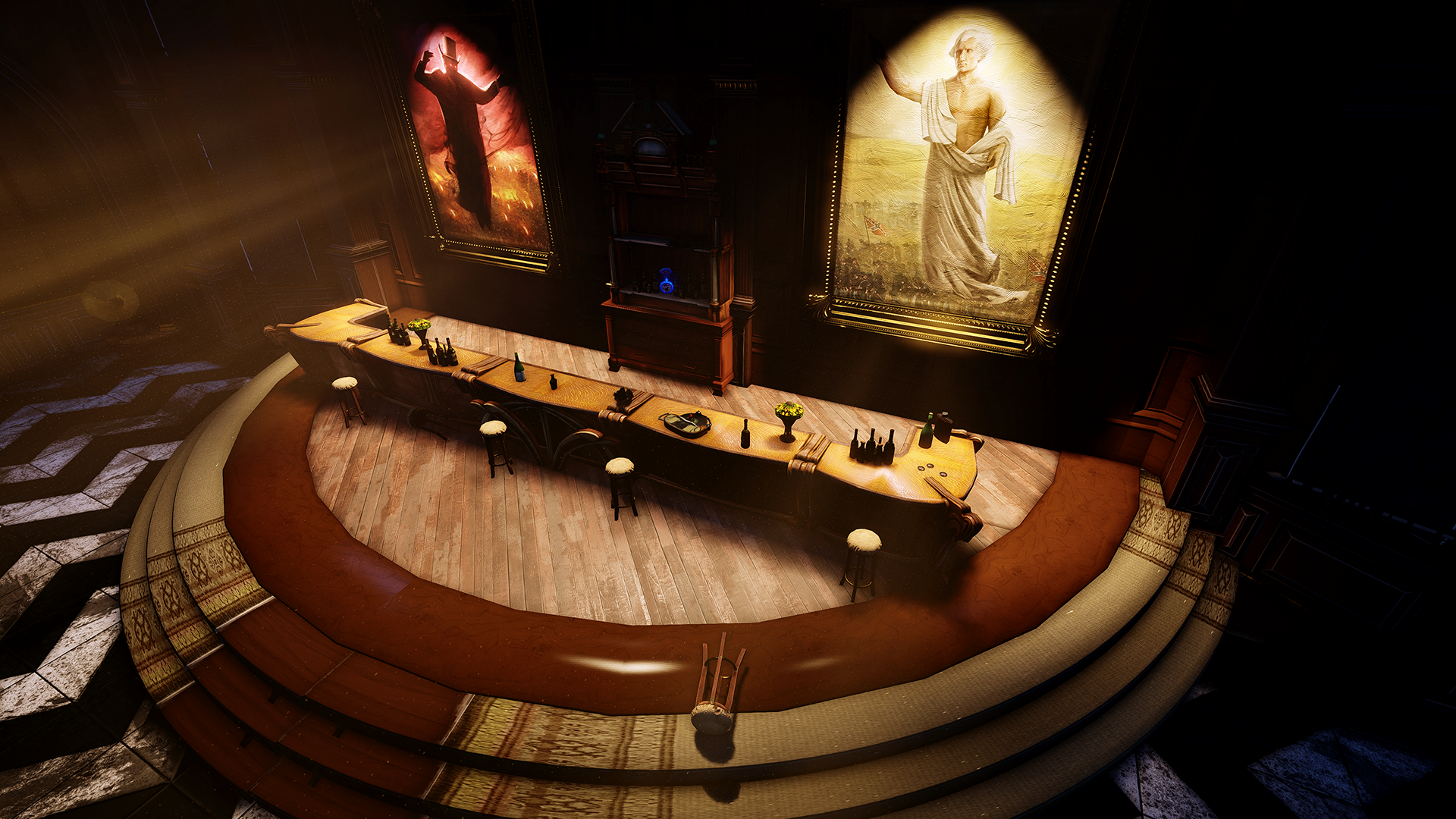 Nella sala delle cerimonie c'è un murale di George Washington che tiene in una mano la campana della libertà e i dieci comandamenti nell'altra, sopra le caricature razziste di persone di varie etnie. Mentre attraversa l'edificio, Booker si scontra con diversi membri dell'Ordine quando si imbatte in loro.
