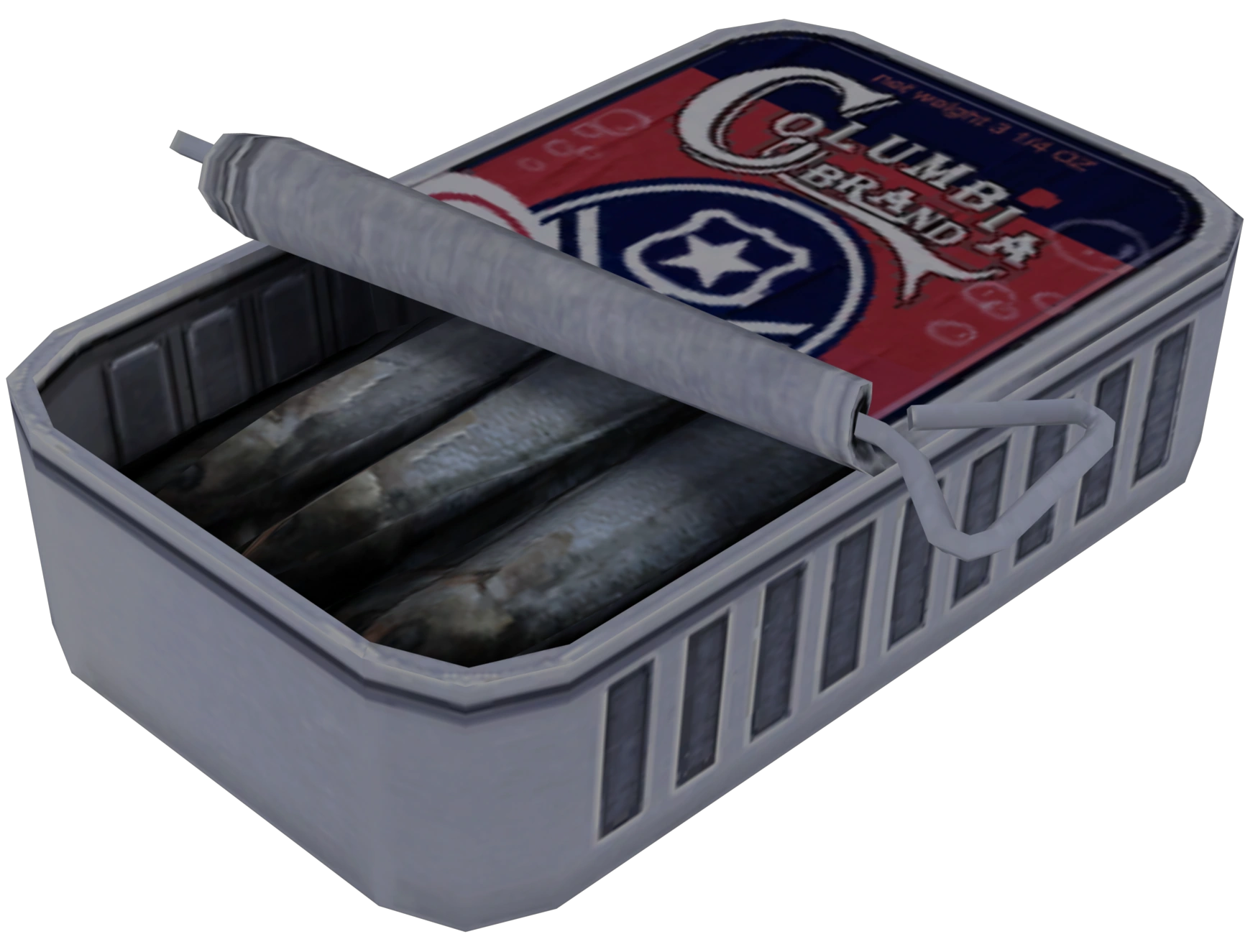 Non molto comuni, le lattine di sardine hanno più probabilità di essere trovate all'aperto che sui cadaveri. Inoltre si trovano normalmente nei bidoni della spazzatura e nei contenitori. Mangiare una scatola ripristinerà una piccola quantità della salute di Booker. Ironicamente su un lato della lattina è stampato "Best Before 8/7/1900", il che significa che la data di scadenza risale a dodici anni prima degli eventi di BioShock Infinite.