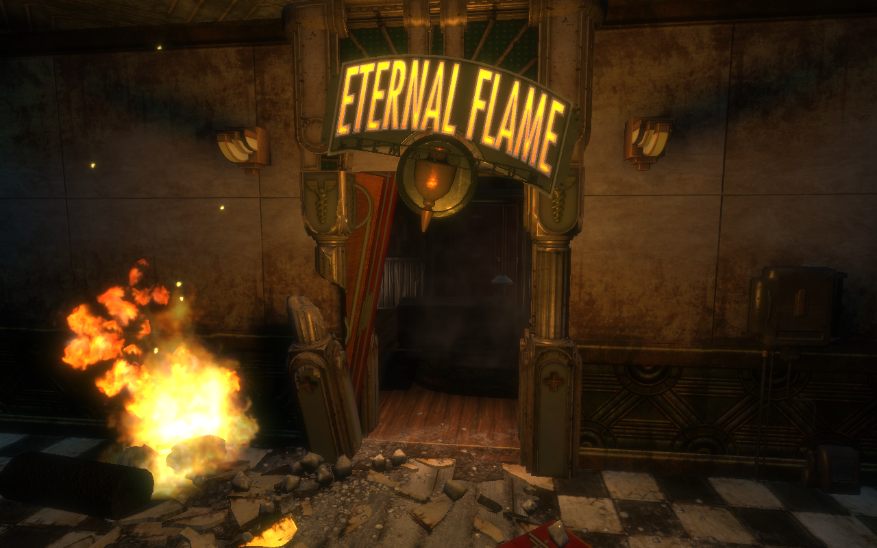 Крематорий Вечное Пламя (англ. Eternal Flame Crematorium) является заведением для кремации мёртвых граждан Восторга, расположенный рядом с Похоронным бюро Сумрачные Поля, в Медицинском павильоне. Джек должен зайти в Вечное Пламя, чтобы найти Плазмид Сожжение!, необходимый, чтобы растопить льды, блокирующие проходы в другие секторы Медицинского павильона.