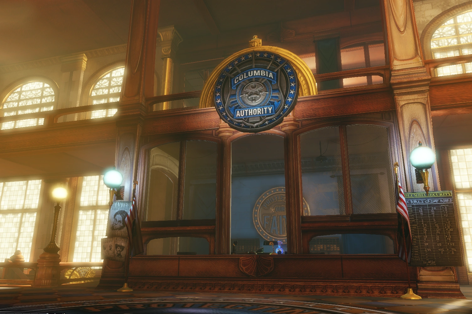 | Оригинальная линия | Маяк · Центр для посетителей · Лотерейная площадь · Крыши центра Комстока · Врата острова монументов · Башня-монумент · Гавань Линкора · Солдатское поле · Зал героев · Сувенирная лавка при зале героев · Вернуться во двор Зала героев · Доки Финктона · Пристанище · Пирс Форта Франклина · Вербовочный центр· Служба Финктона · Площадь Тщания · Оружейная мастерская· Клуб «Добрый час» · Трущобы · Полицейский склад «Бычий дом» · Бычий двор · К фабрике · Двор фабрики· Фабрика · Эмпория · Порт Процветания · Деловой район, Эмпория · Сады памяти · Дом Комстока · Атриум · Кабинет директора · Операционный театр · Длань Пророка · Ангарная палуба · Инженерная палуба · Командная палуба · Море дверей |