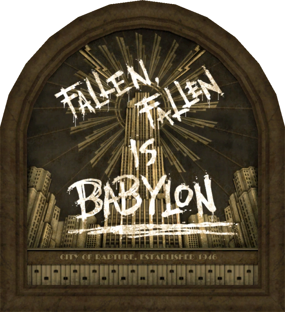 • The graffiti on the plaque directly across from the Vita-Chamber where Delta first awakens reads "Fallen, fallen is Babylon". This is a reference to the Bible passage Revelation 18:2, "Fallen! Fallen is Babylon the Great! She has become a home for demons and a haunt for every evil spirit, a haunt for every unclean and detestable bird".