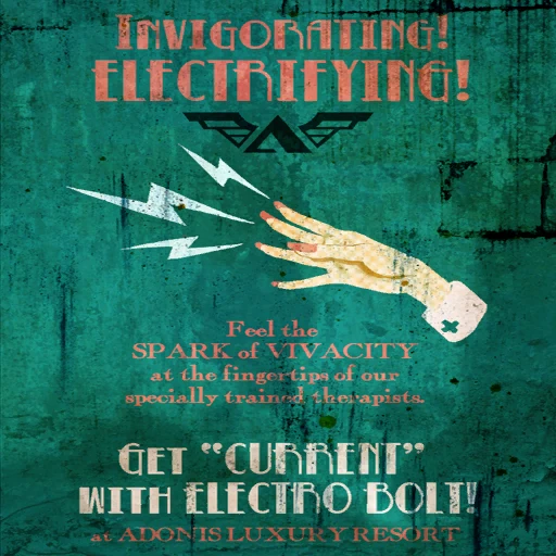 • The player also has an opportunity to try out Electro Bolt on Splicers in water, similar to the experience in the Kashmir Restaurant in BioShock. Likewise, it is used to open a malfunctioning door.