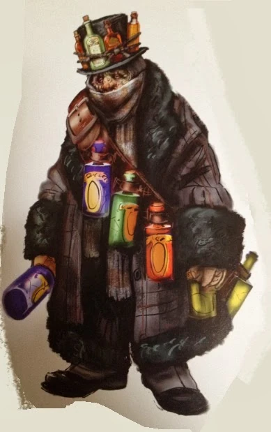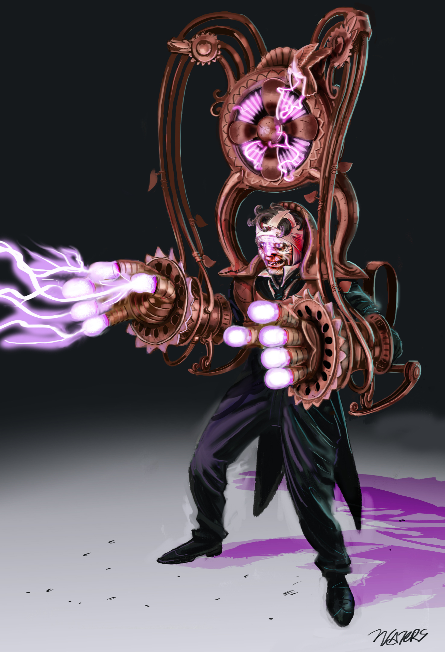 A Columbian version of Rapture's iconic Plasmid mural was designed by Laura Zimmermann, but was never implemented. The mural greatly mirrors the Rapture variant, showing Columbia citizens using Vigors in everyday activities. Notably, a man is depicted holding a lightbulb powered with Shock Jockey, which clearly references the little girl doing the exact same thing on the Rapture variant, only with Electro Bolt.