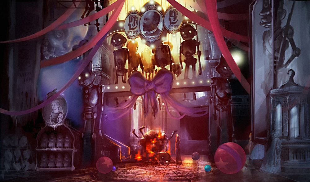 Contrary to what is in the final game, Abrahamn Lincoln was viewed in a good light during one point in development of the game. Thus some objects were made that did not fit after it was decided to have Lincoln depicted as an "apostate". A marionette of Lincoln, as well as a Lincoln mask which Elizabeth interacts with, can be seen in Major's Notions, Sundries and Novelties during the BioShock Infinite E3 2011 Gameplay Demo (at 1:37 and 1:42)[16] which were removed due to this. The remaining marionettes appear in the Battleship Bay Gift Shop along with a sign reading "Founders Marionettes". The sign was also seen in the demo (at 1:41),[16] but with Lincoln instead of Uncle Sam.