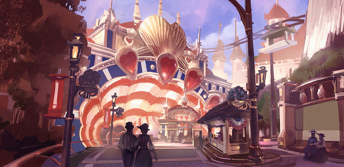 At the start of development for what would become BioShock Infinite the setting for the game was to be a familiar place, the underwater city of Rapture. Despite being set in Rapture, the team didn’t want to repeat what had been done in BioShock and the story would place before the Civil War ravaged the city. As work progressed it was decided that seeing the Rapture Civil War occur would destroy the mystery of the conflict and that it was best to leave it a mystery. While there was still to be a connection to Rapture in some way, it was decided that the game would take place in a new city. For a time the Renaissance was considered, but with the announcement of Assassin's Creed II which took place in that same time period, it was decided that a different setting was needed.[1] Finally a choice would be made and the new city would be set in the sky.[2]