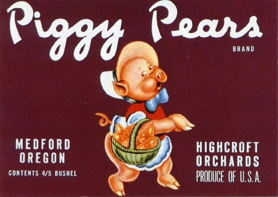• The brand's ad is partially derived from a fruit crate label of Piggy Pear Brand fruit.