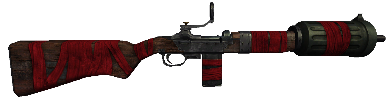 The Vox Burstgun is a modified version of the Huntsman used by the Vox Populi that fires in three-round bursts instead of a single, powerful shot. It is only found in the later parts of the game, first available to the player after opening the Tear in the Shantytown Police Station. It is visually distinct from the Carbine, with a larger magazine, a wide, cylindrical heat shield around the barrel, an improvised optical sight, and the distinctive red tape marking it as a Vox weapon. Despite serving a similar role as a mid-to-long range marksman rifle, the Burstgun functions differently to the Carbine, with each shot delivering one-third of a single Carbine round, splitting up damage in each burst. This means that the Burstgun is considerably more effective in closer ranges than the Carbine, capable of firing more rounds more quickly and hitting multiple enemies with each pull of the trigger. The Burstgun also features a low-magnification sight which, despite using a crude reticle, allows the player to zoom in further than the Carbine when firing, improving long range effectiveness. The Burstgun has a larger magazine than the Carbine, capable of delivering ten full bursts as opposed to the Carbine's eight shots. Ammunition is also more common for the Burstgun than its standard counterpart, being used by Vox Populi members later in the game.