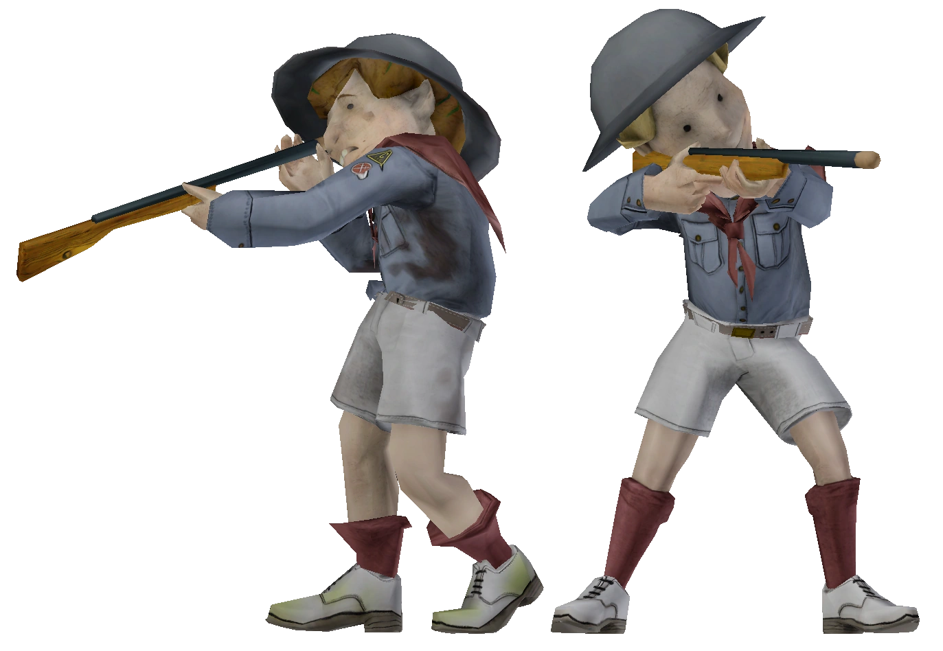 The pair proved to be a popular and successful tool of the Founders. Dimwit and Duke reached iconic status and would soon be utilized beyond just their propaganda playlets. Much like how the Little Sisters were used to promote the Gatherer's Gardens in Rapture, Dimwit & Duke were used as decorative figurines for many Columbian businesses.