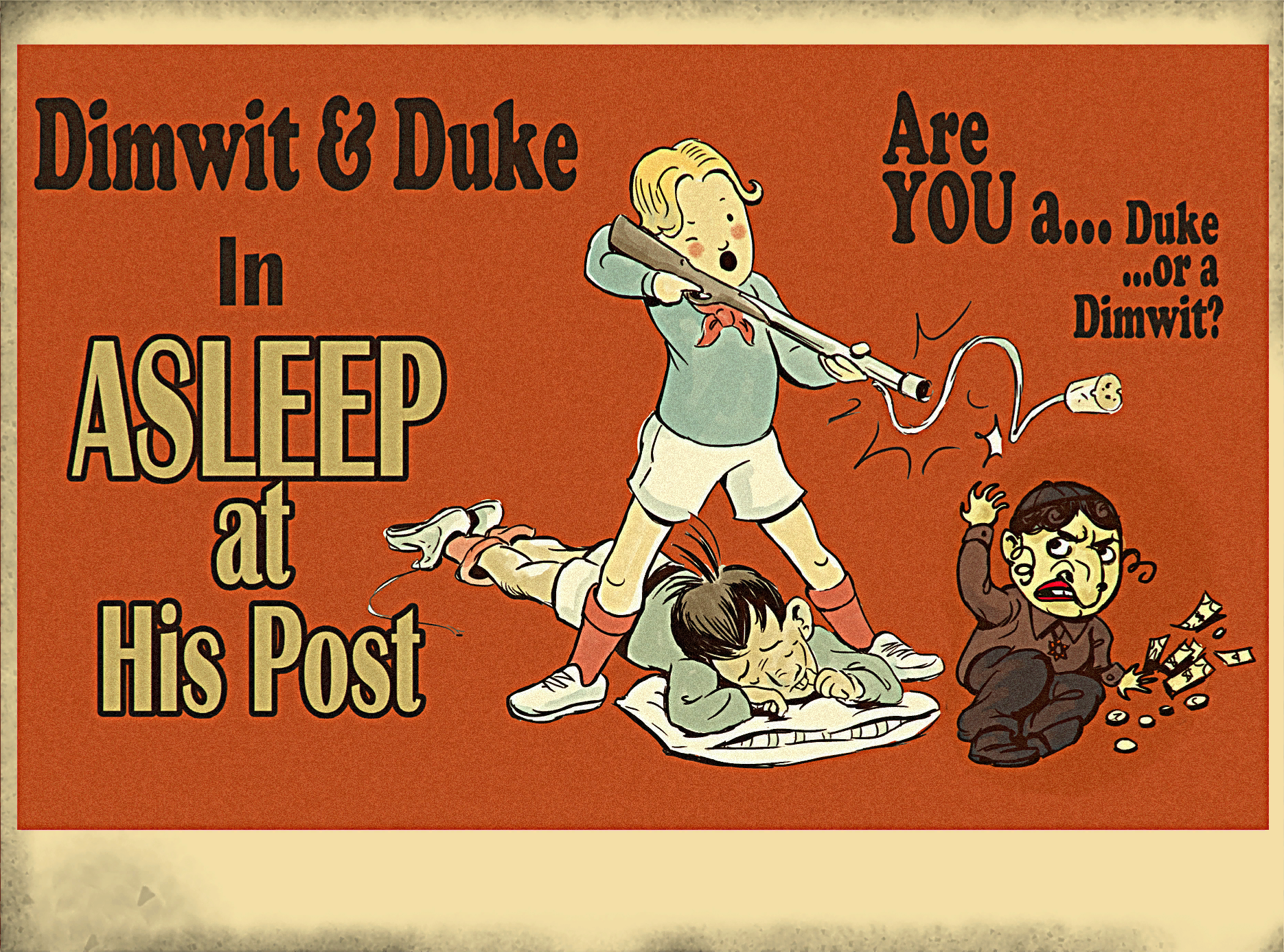 A poster for the Dimwit and Duke cartoon "Asleep at His Post."