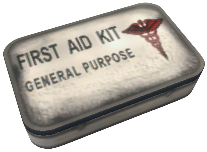 A First Aid Kit instantly restores health when used, filling your red Health Bar.
