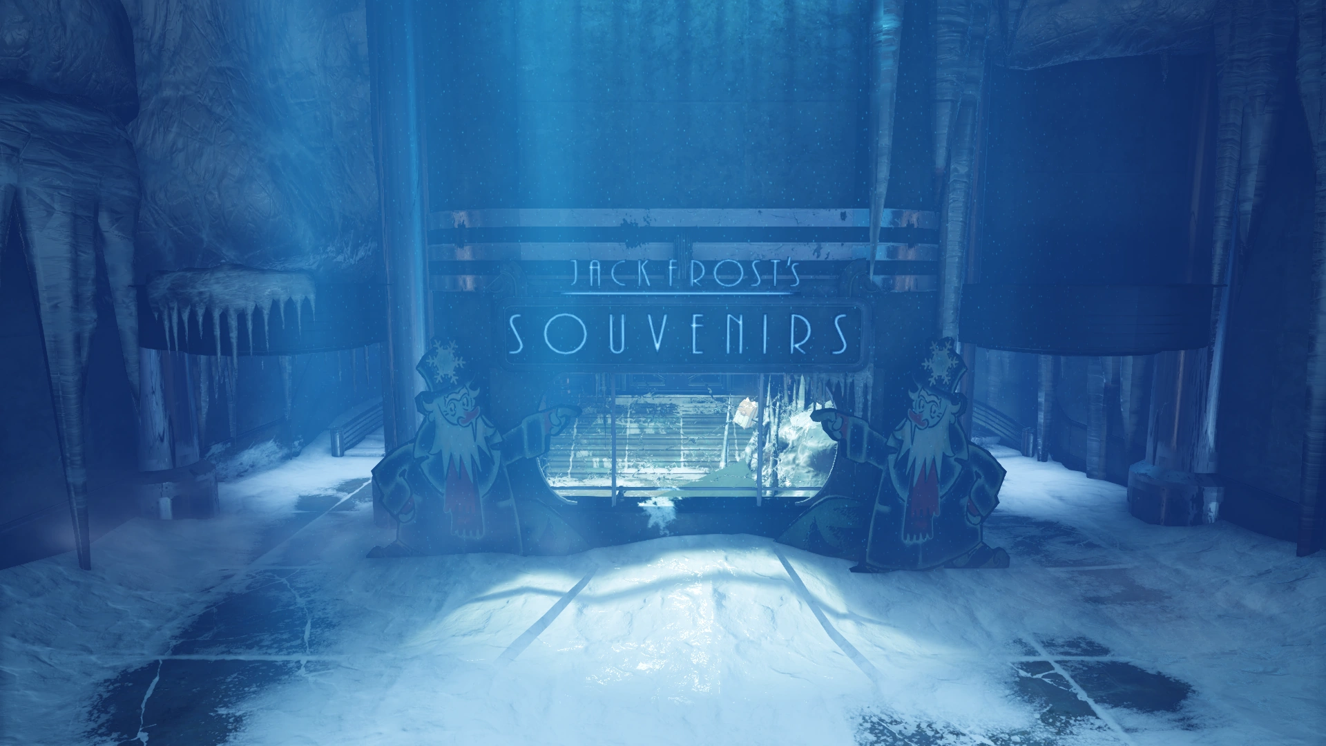 Booker and Elizabeth enter Jack Frost's Village after duking it out with the Splicers outside. The facility is layered with snow, stalactite-sized icicles, and frozen corpses. The place is positively glacial, even for an ice rink. Booker suspects the excess cold is the result of the Frosty Splicer he and Elizabeth have been pursuing.