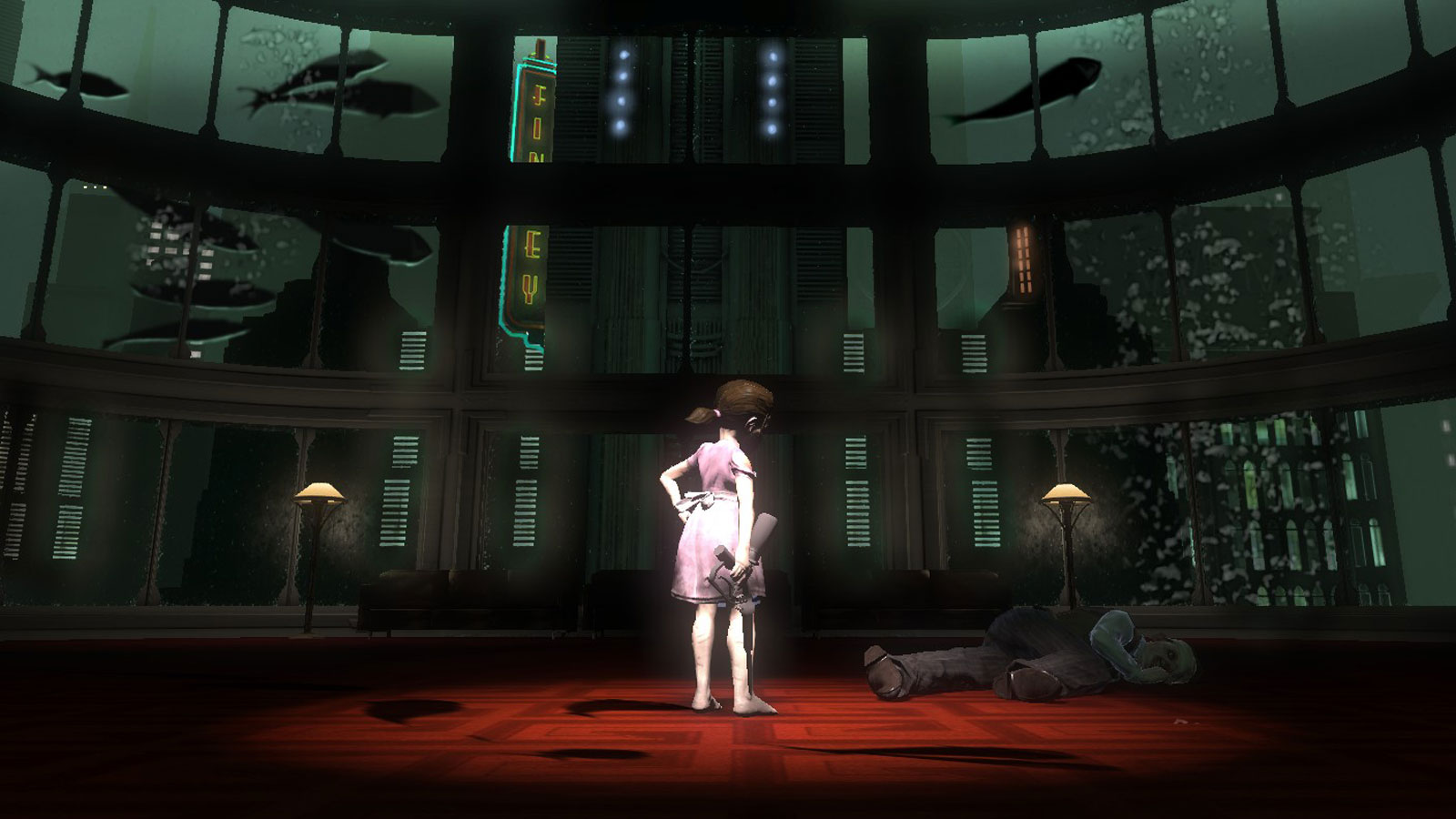 2 Little Sisters are seen in a flashback when Subject Delta is captured by Sofia Lamb inside the quarantine chamber where her daughter Eleanor is held. One is seen reviving Delta at the Vita-Chamber in Adonis Luxury Resort at Eleanor's request in the game's beginning, and the other is the Sister previously rescued/harvested at Ryan Amusements.