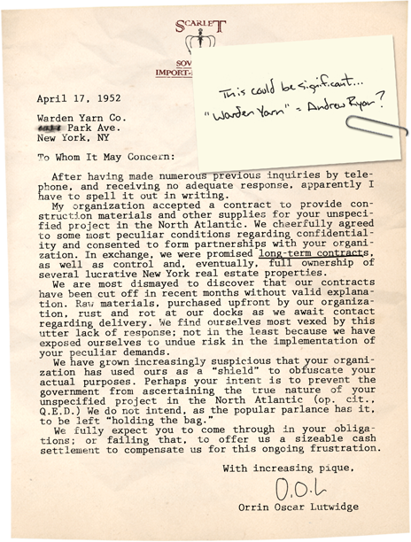 unspecified project in the North Atlantic (op. cit.,