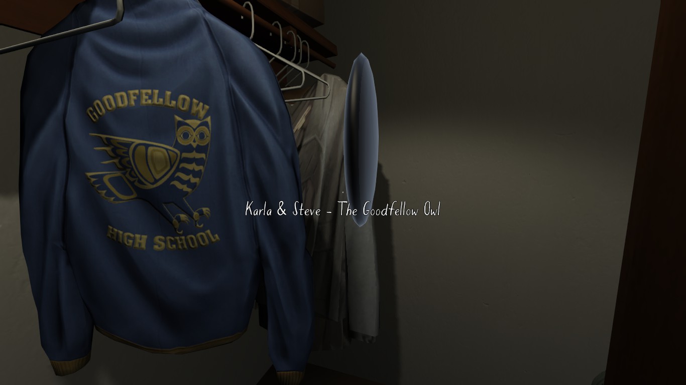 - ↑ Gone Home developer commentary: Karla & Steve - The Goodfellow Owl (walkthrough @ 5:25)
