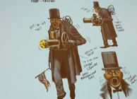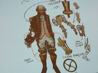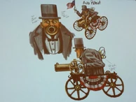 • Originally, the Motorized Patriot evolved from the concept of the Automatic Gentleman. The initial idea was inspired by 20th century fascination with exploring technology into the field of early robotics and complicated machinery, which Irrational Games felt that for Columbia, they would consider their scientific hive-mind imagination to create a servant for the society. As Nate Wells mentions, "There's this fantasy that people of the time wanted these automatons to do things for them. We don't start with a gun. We set the vibe first."[7] Eventually, multiple concepts of the Motorized Patriot's appearance and its Peppermill weapon were conceptualized before being finalized, such as one version had a small altered version of the Peppermill attached to its torso, another had its upper torso mounted on a wheeled platform, and another version was modeled after Abraham Lincoln, bearing his signature "stovepipe" hat. At this early point in development concept art shows that the Motorized Patriot was called the the "Auto-Patriot".