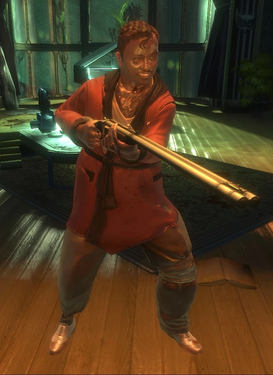"Oscar Calraca is both a lover and a fighter. As a younger man, his business savvy, dedicated work ethic, and discriminating tastes earned him a fortune in cosmetics. Now, his concerns are more sensual in nature, and his tastefully extravagant A-list parties make him a permanent fixture in Rapture's gossip pages."