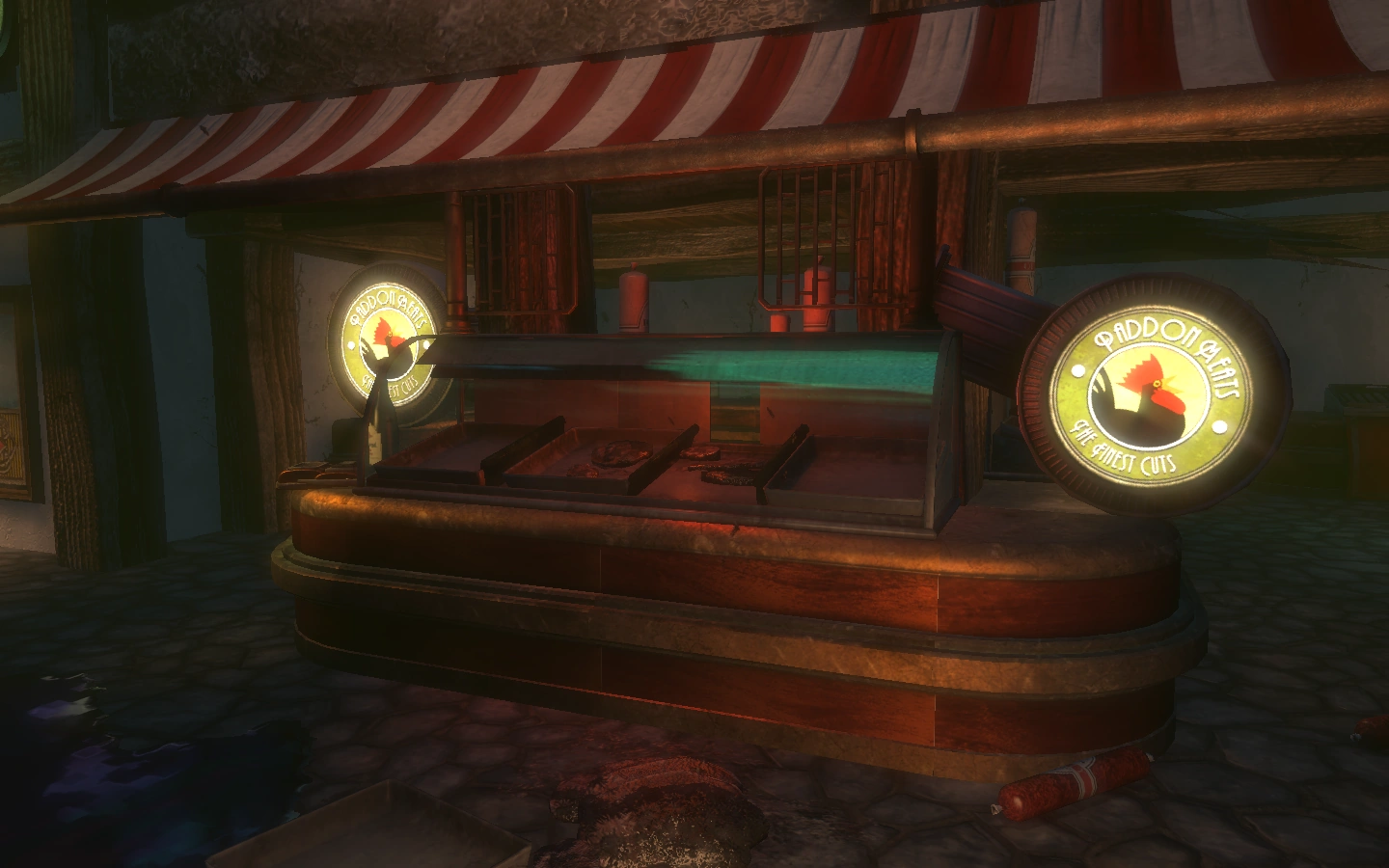In Rapture's heyday, the stand sold various slices of meat, including several varieties of the Fat Tony's brand sausage. Paddon occupied one of the larger stalls in the Farmer's Market and it appears the business prepared some of its meat fresh on-site.