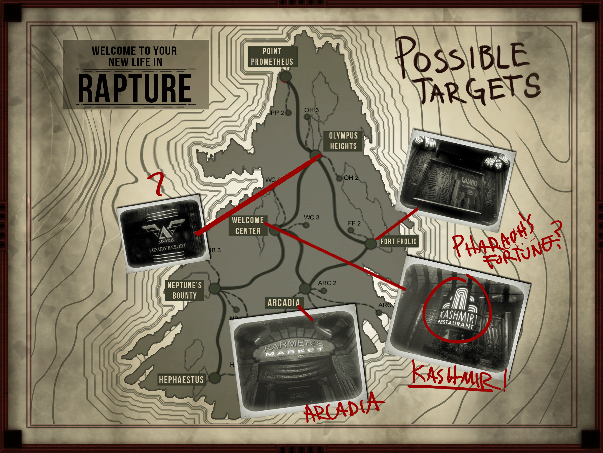 - The names of a majority of the locations in Rapture are inspired by gods and locations from ancient Greek, Roman and Biblical culture.