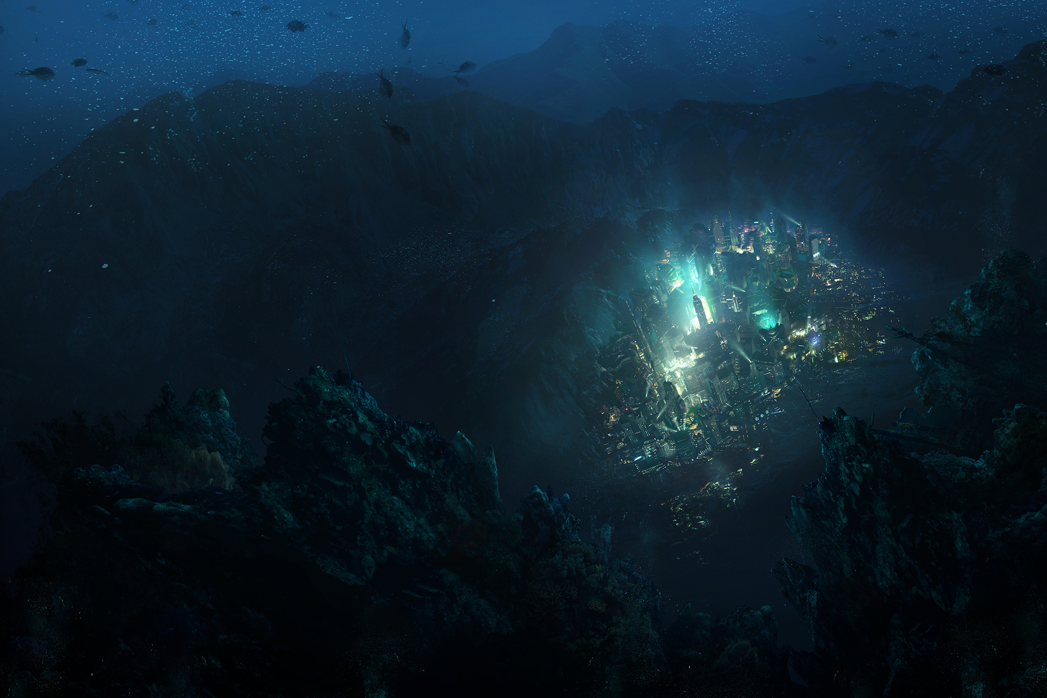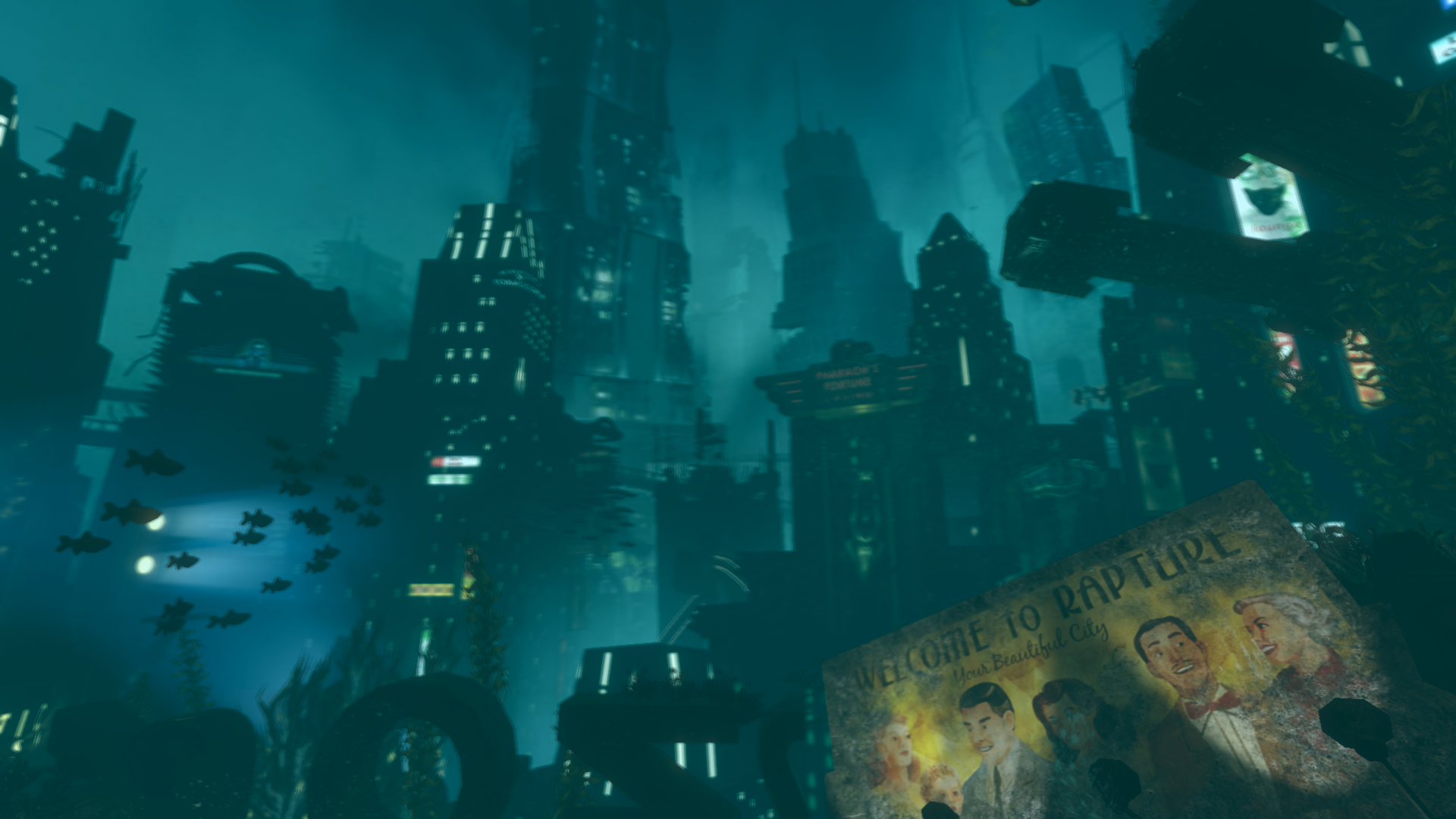 An underwater "aerial" view of Rapture.