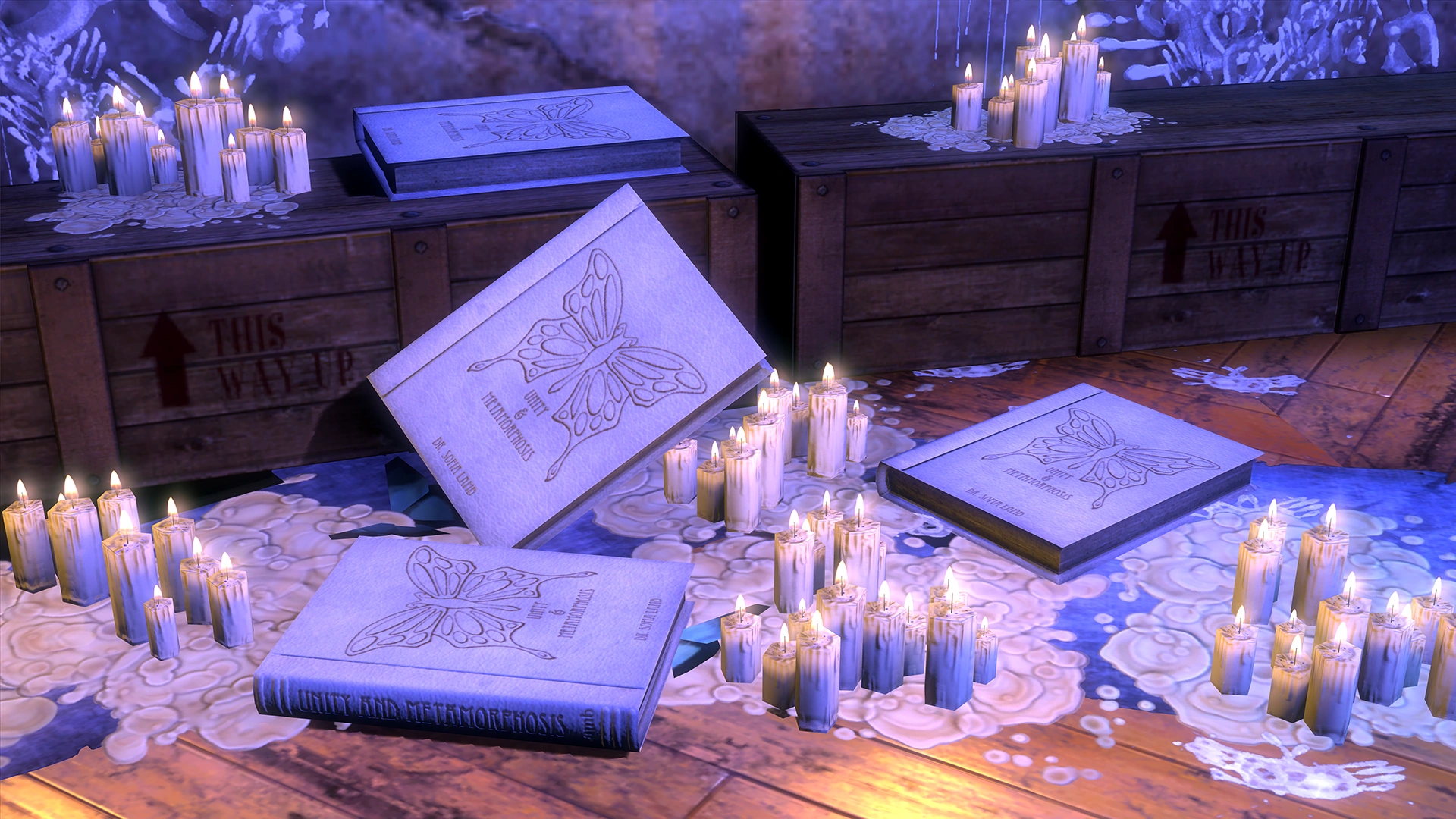 Unity & Metamorphosis is a book written by Sofia Lamb about her philosophy of creating paradise through unity and abandonment of the self. The book is imprinted with a large butterfly symbol and is treated as a religious document by members of the Rapture Family. It can be found at shrines of the cult and in the resting places of believers.