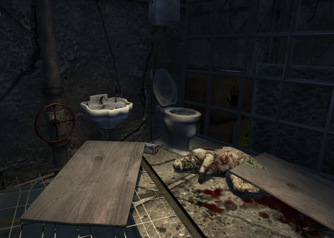This area was the center of the Wharfmaster's Office and was where minor offenders and suspected smugglers were kept for a short period of time. A dead Big Daddy is in the left cell and a Ducky model Splicer Corpse is in the right one. The hallway surrounding the cells have crates of contraband and files strewn all over the place. The door to the small office on the left has malfunctioned, while the door to the interrogation room has been completely blocked by debris. According to the indicator light, someone is still inside.